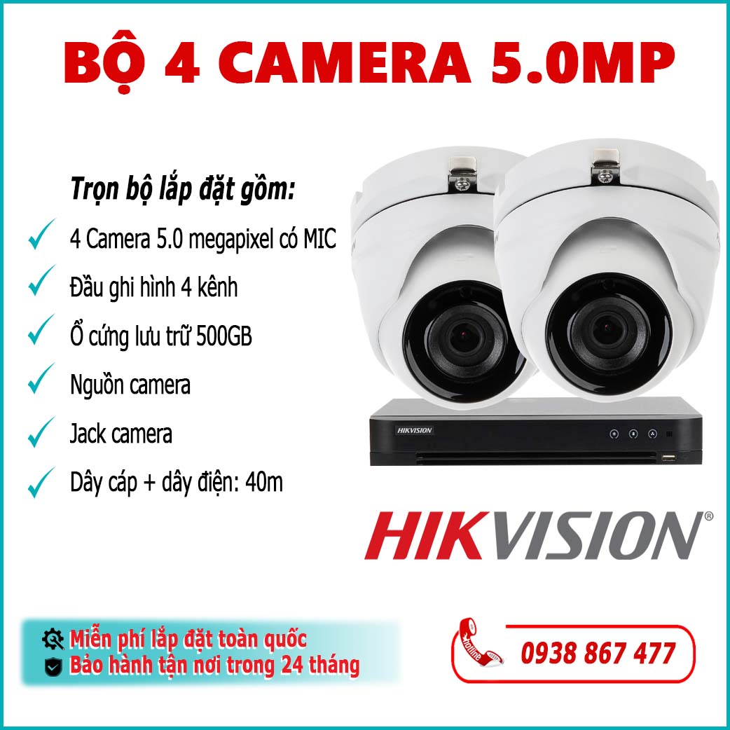 - 04 camera có mic quan sát ngày và đêm. Độ phân giải 5.0 Megapixel cho hình ảnh cực kì sắc nét và chất lượng ổn định, camera có màu hỗ trợ nhiều chế độ cho người dùng.