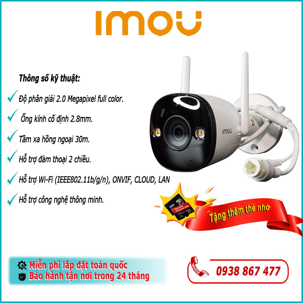 • Camera wifi thân cố định ngoài trời FULL COLOR 2.0MP