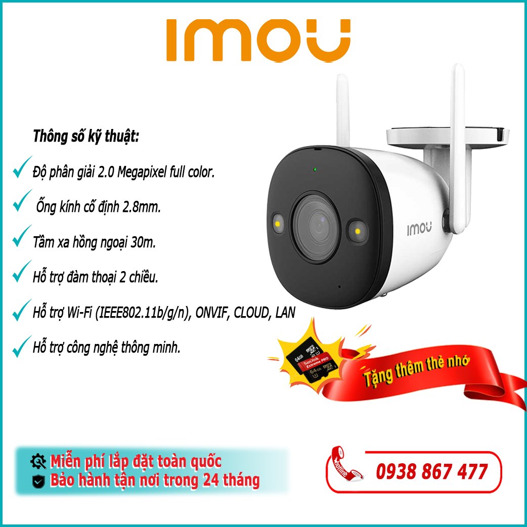 • Camera wifi thân cố định ngoài trời FULL COLOR 2.0MP