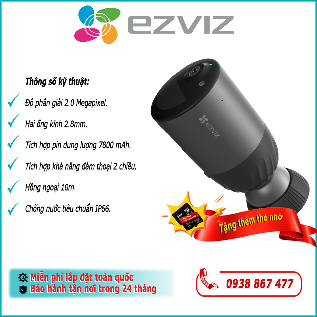 - Có thể hoạt động 210 ngày khi sạc đầy pin (Có thể kết hợp với tấm pin mặt trời Ezviz để sạc trực tiếp).