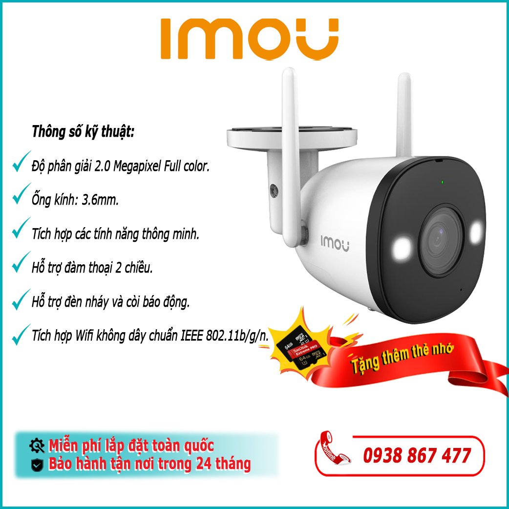 Camera IP Wifi không dây 2.0 Megapixel Full Color IMOU IPC-F26FP 1080P