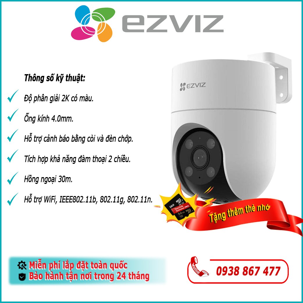 - Hỗ trợ WiFi + cài đặt WiFi thông minh với phần mềm EZVIZ - quá trình cài đặt chỉ mất vài phút với người lần đầu sử dụng.